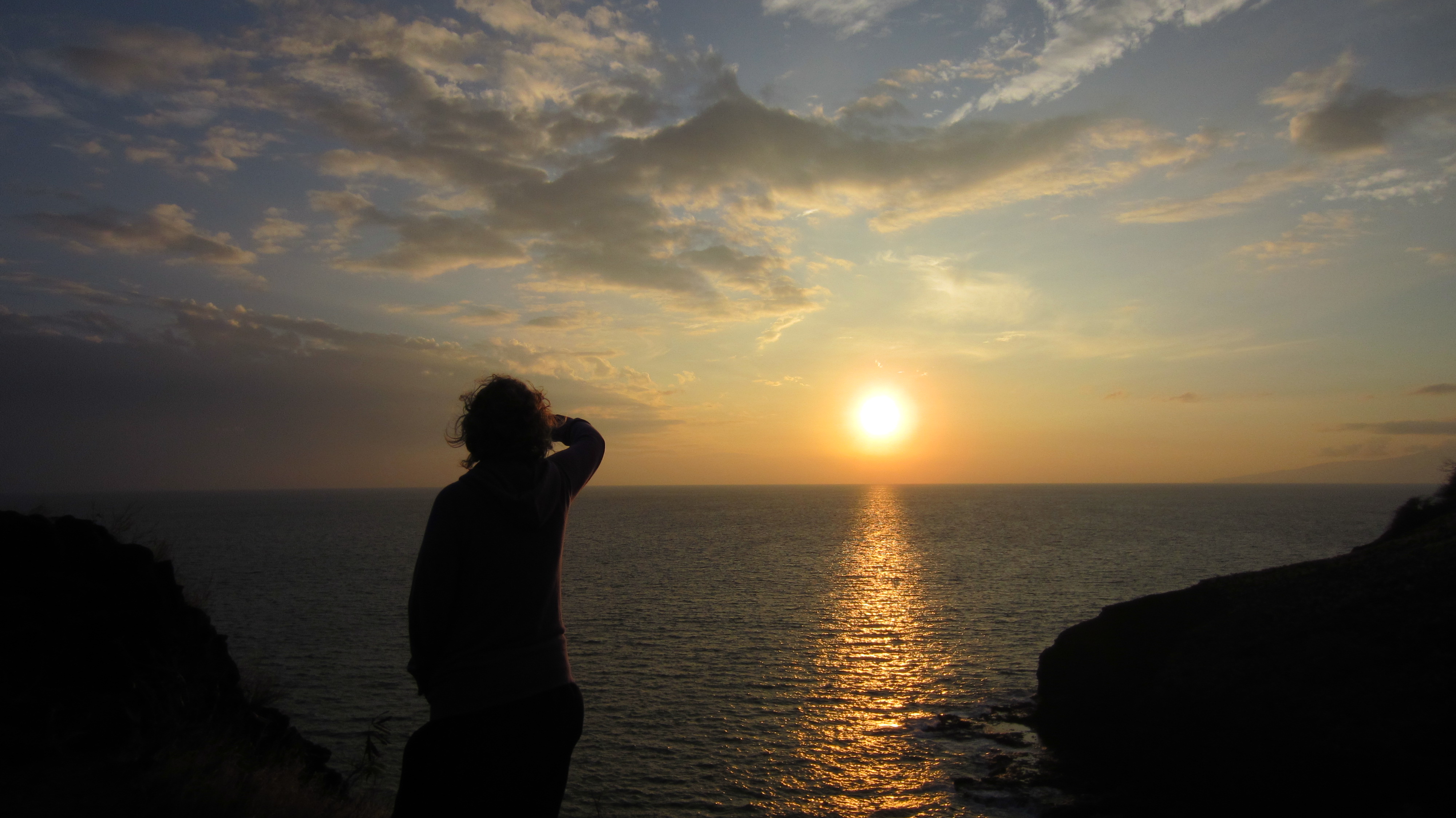 For the next five days we enjoyed perfect sapphire skies. We saw the best magic/comedy show ever at Warren and Annabelle’s, found a couple of delicious restaurants, got misted by waterfalls and walked through black lava caves on the Road to Hana, and finally saw turtles, six of them(!), feeding in a small cove near a rock formation they call Dragon’s Teeth. We witnessed gorgeous sunsets.